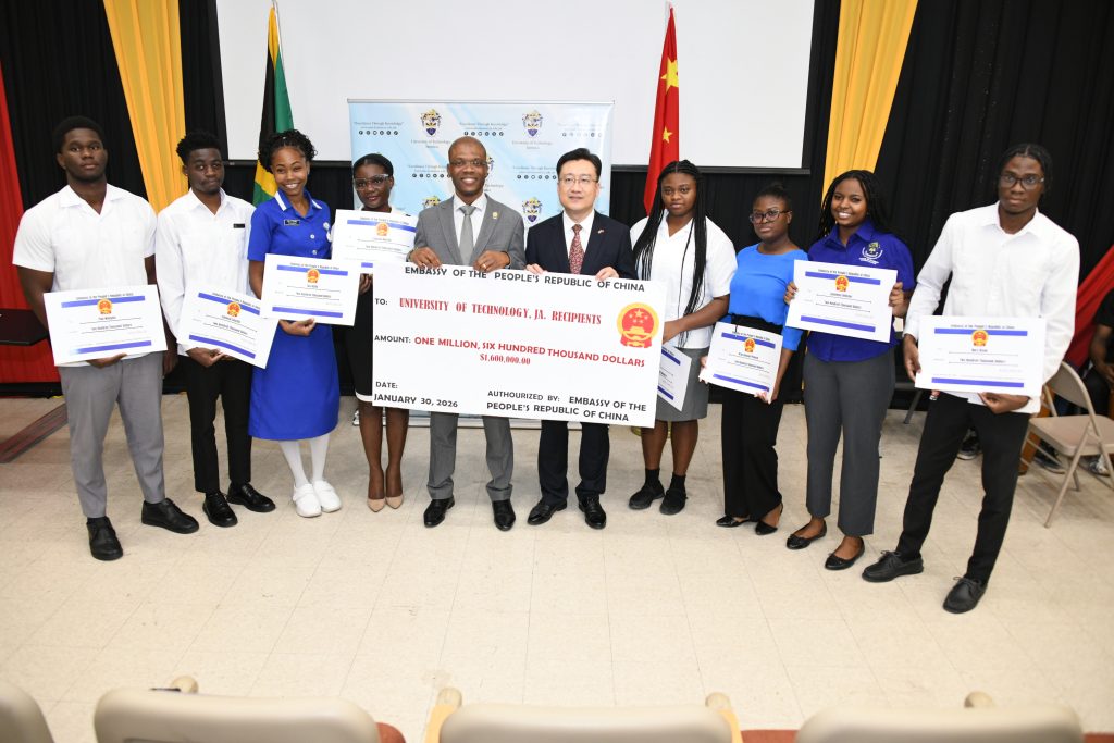 Chinese Ambassador to Jamaica, His Excellency Wang Jinfeng reaffirmed China’s commitment to advancing education in Jamaica through the Chinese Ambassador’s Scholarship. The annual award provides tuition support to tertiary students across a range of disciplines. The ambassador gave the assurance during the scholarship handing-over ceremony on Friday, January 30, at UTech, Jamaica, Papine Campus, where eight students received a total of $1.6 million in funding for the 2025/2026 academic year.