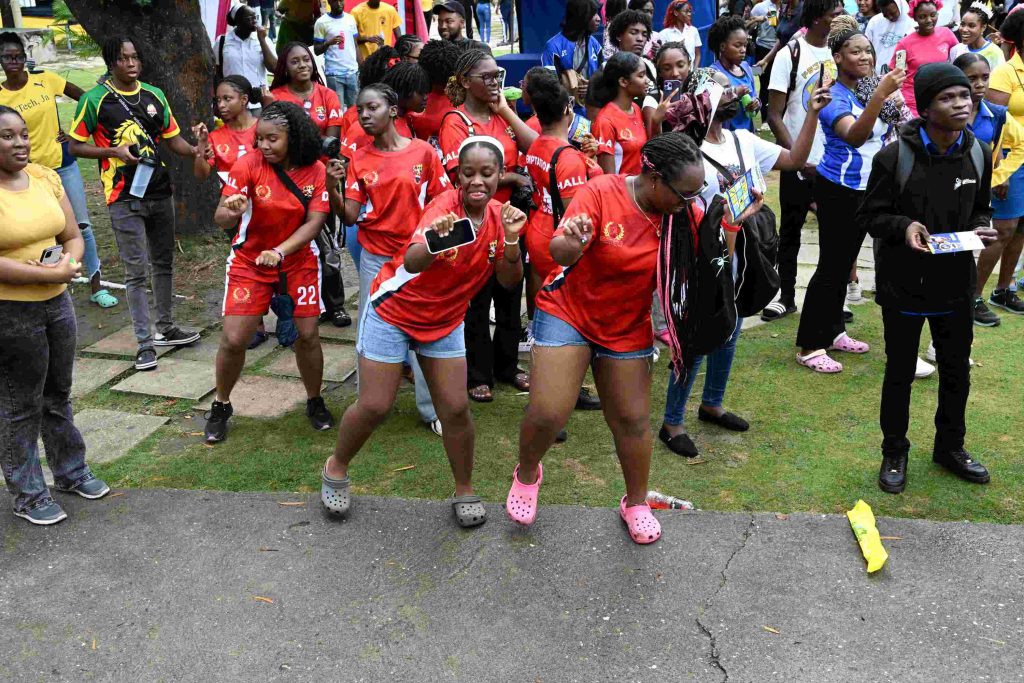 Residents of Hall A enjoy the lively atmosphere as they dance and engage in the festivities during President’s Knights Day 2026 at the University of Technology, Jamaica.